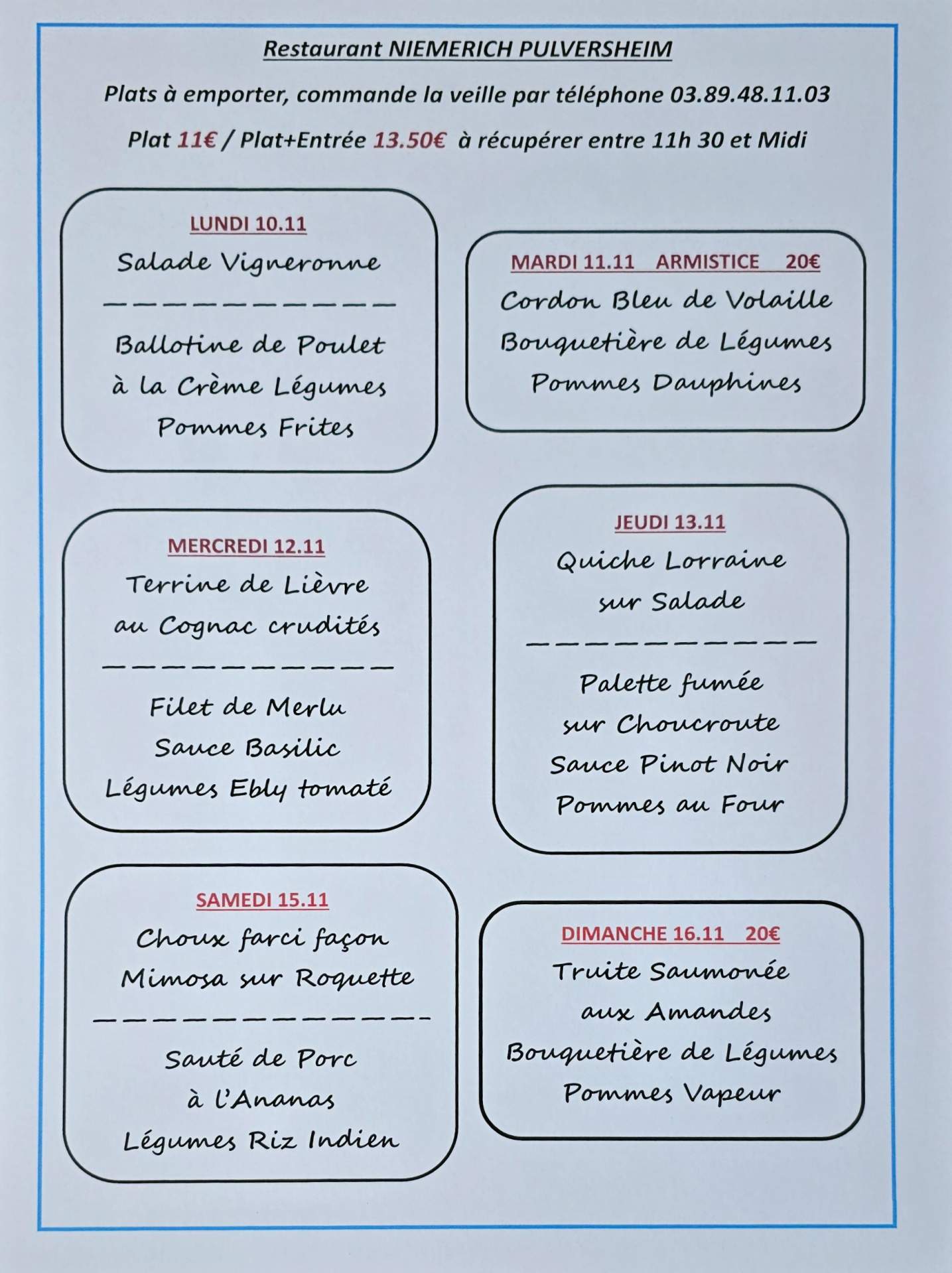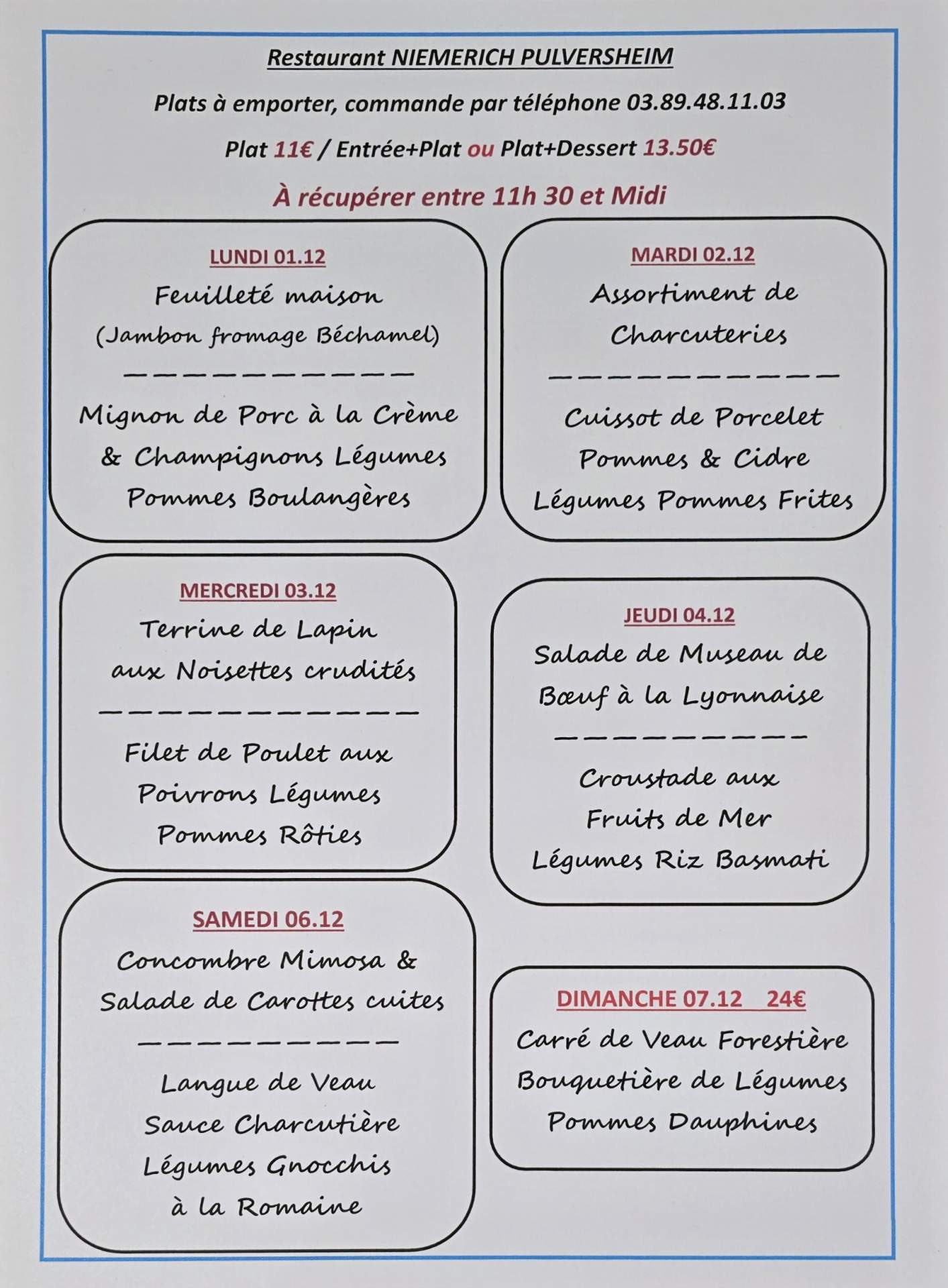 Voici notre Menu pour le jour de Noël, le jeudi 25 Décembre à midi.