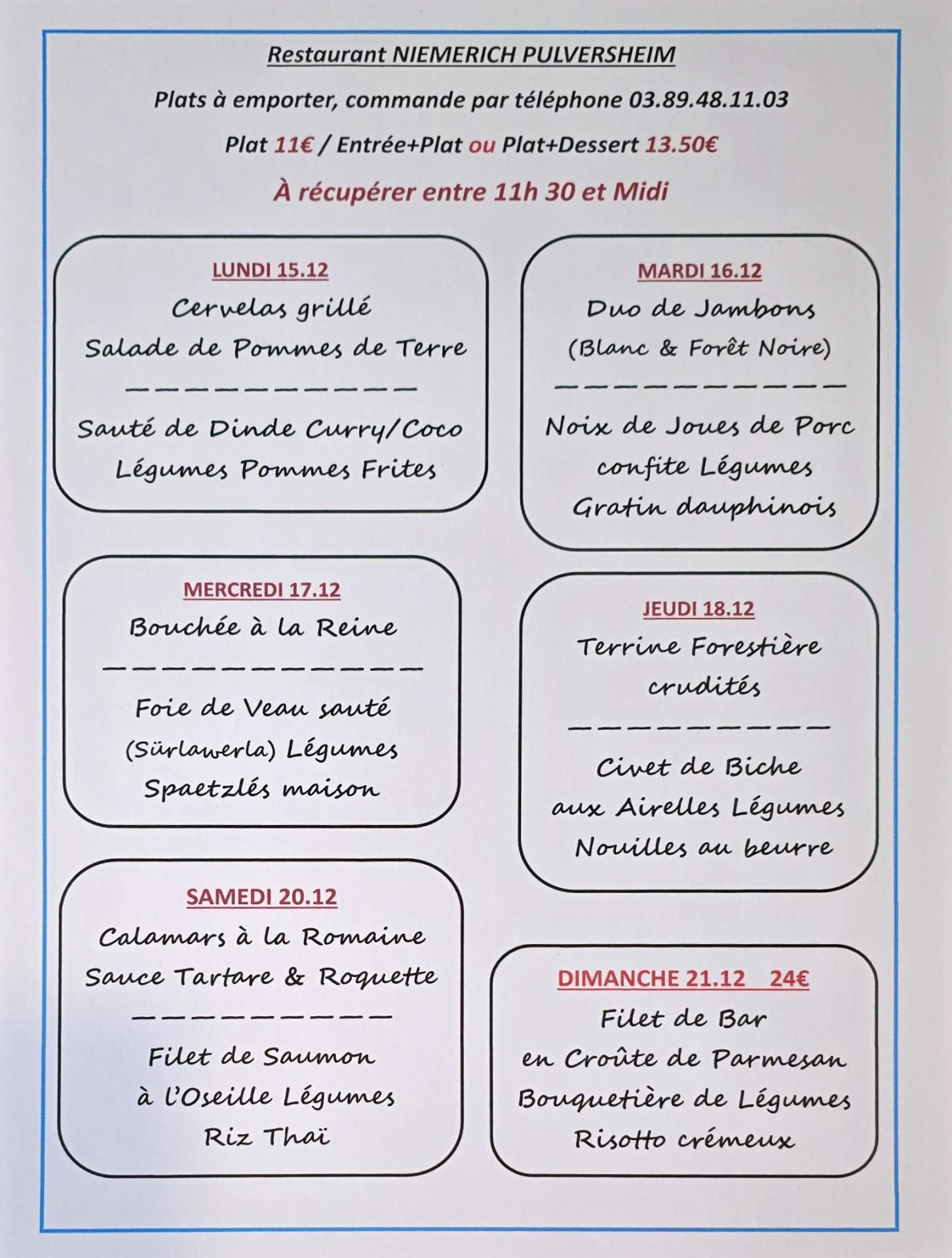N'hésitez pas à reserver avant le 21 décembre si possible.